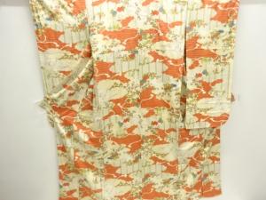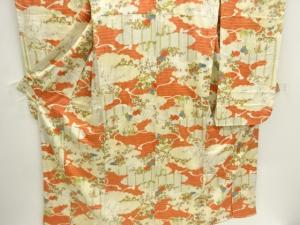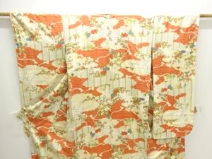 雲取りに草花模様振袖