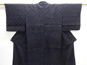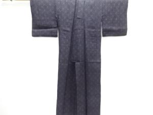 大正ロマン 抽象花模様織り出し本場結城紬単衣着物(ちぢみ)