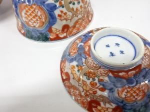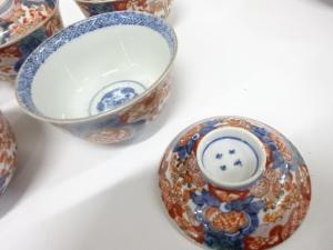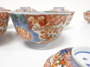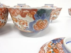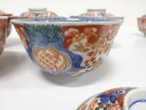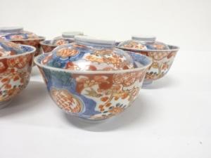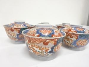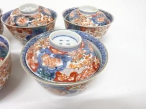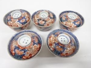 古伊万里 染錦 蓋茶碗 5客