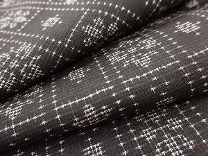 リサイクル 格子に花模様織り出し本場泥大島紬着物(7マルキ)