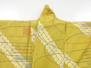リサイクル 絞り線描き模様織出し縦節紬着物