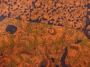 リサイクル 裂取りに花更紗模様手織り紬着物