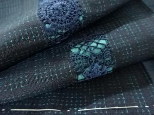 未使用品 ドロンワーク 短冊に花模様西陣お召訪問着(大丸)