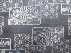 家屋風景模様織り出し西陣伝承紬着物アンサンブル
