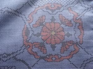 洗練された落ち着きのある色合いで、生地そのものは柔らかく、しわになりにくいと言われている。大島紬の特徴とも言える、織締めと呼ばれる技法で藍を用いて染められた糸を使用している。