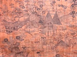 和服の文様の一種。水辺の風景に家屋や草花が描かれた模様。