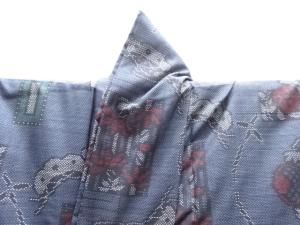 洗練された落ち着きのある色合いで、生地そのものは柔らかく、しわになりにくいと言われている。大島紬の特徴とも言える、織締めと呼ばれる技法で藍を用いて染められた糸を使用している。