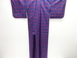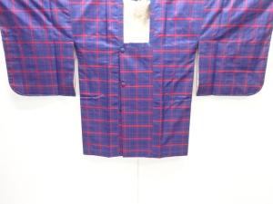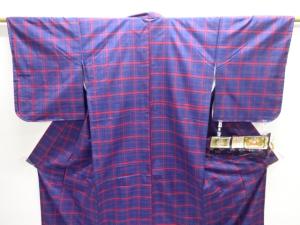 未使用品 格子織り出し本場泥大島紬着物道行コートアンサンブル