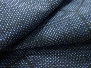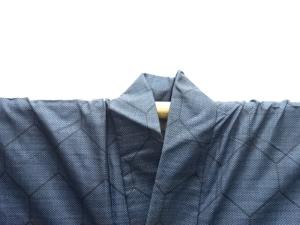 洗練された落ち着きのある色合いで、生地そのものは柔らかく、しわになりにくいと言われている。大島紬の特徴とも言える、織締めと呼ばれる技法で藍を用いて染められた糸を使用している。
