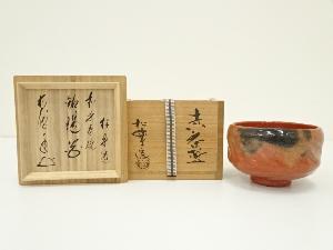 佐々木松楽造 赤楽茶碗(銘有)(前大徳 矢野一甫書付)(共箱)