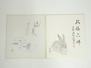大徳寺 細合喝堂筆 「招福吉祥」干支兎画賛など 肉筆色紙2点