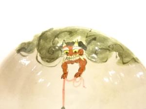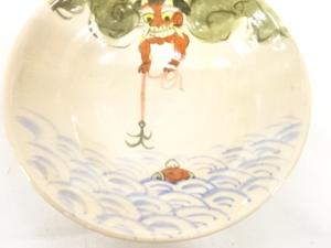 楽焼 伊東桂楽造 雷さんの絵 平茶碗