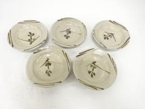 黒牟田焼 丸田正美造 刷毛目 草花文 銘々皿 5客揃
