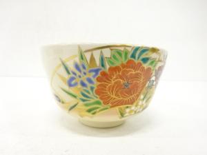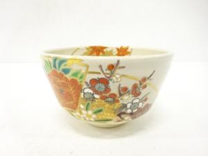 壮峰造 金彩色絵 仁清写 四季草花 茶碗