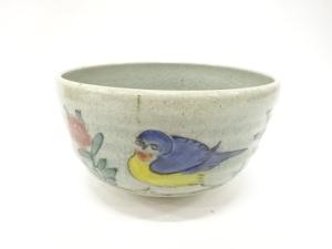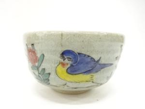 渋草焼 柳三造 色絵 花鳥 茶碗