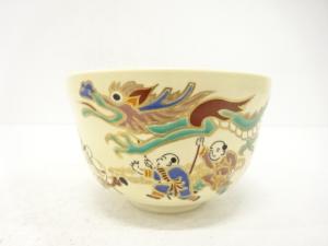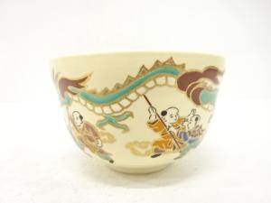 京焼 宮地英香造 金彩色絵 唐子遊び 茶碗