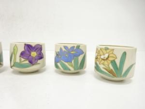 作家物 草花 絵変わり 煎茶碗 5客揃
