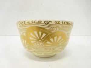京焼 宮地英香造 金彩 波車 茶碗