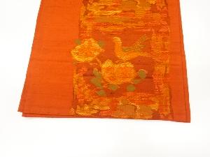 リサイクル 手織り紬花鳥模様織出し袋帯