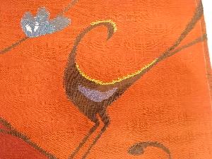 未使用品 手織り紬 花鳥模様織り出し袋帯