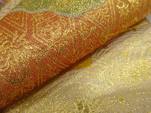 帯幅部分折れ山線に薄くすみ・スレ、無地部分と帯裏に薄アクがあります。