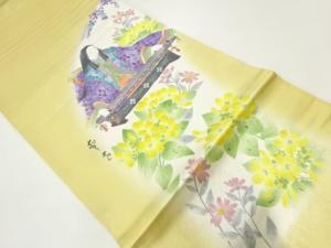 作家物 手描き平安人物模様織出し袋帯