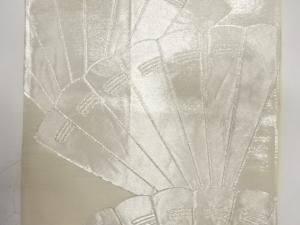 帯幅部分折れ山線にくすみ、無地部分と帯裏に薄アク・くすみがあります。