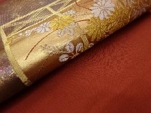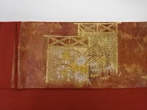 リサイクル 金彩屏風に秋草・笹模様織出し名古屋帯