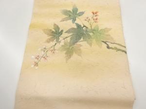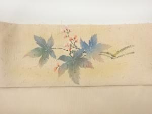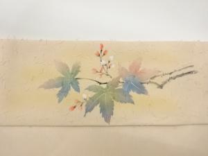作家物 ひげ紬金彩手描き紅葉に花模様名古屋帯
