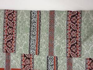 横段に抽象草花・動物模様織出し名古屋帯