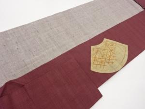 手織り紬切り嵌め風相良刺繍地紙に亀甲・菱模様名古屋帯