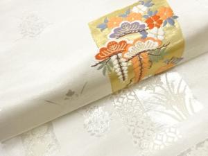 本金短冊に尾長鳥・松・花々模様織出し名古屋帯
