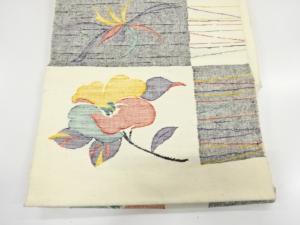 手織り真綿紬 椿に花模様織り出し 名古屋帯