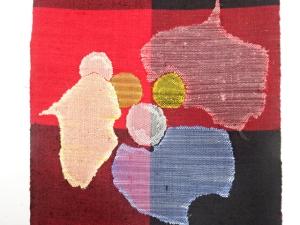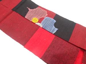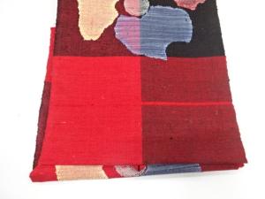 手織り真綿紬 抽象花模様織り出し 名古屋帯