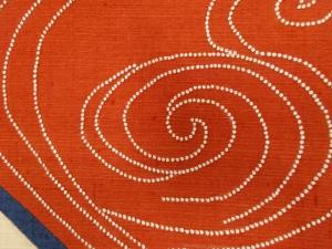 手織り真綿紬 切りばめ 相良刺繍 流水模様 名古屋帯