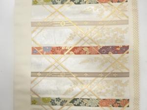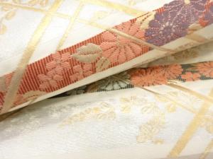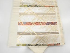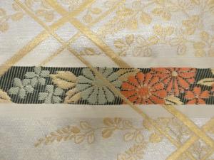 引箔 横段に菊・桜・萩模様織り出し 名古屋帯