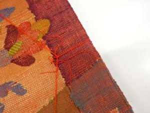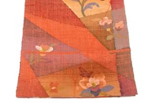 未使用品 手織り真綿紬 切りばめ風 花更紗模様織り出し 名古屋帯