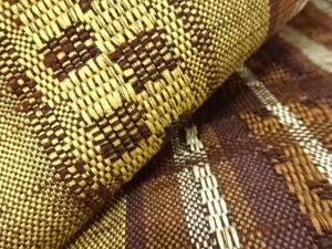 手織り真綿紬 格子に古典柄織り出し 名古屋帯