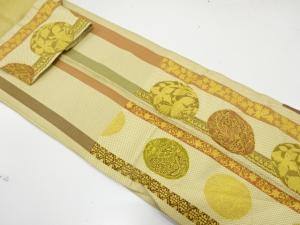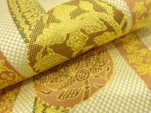 本場筑前博多 縞に花鳥更紗模様織り出し 名古屋帯