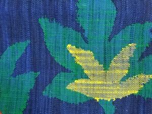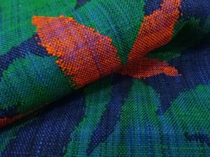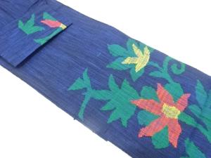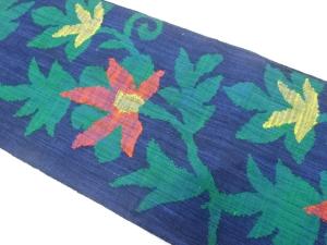 手織り真綿紬 花唐草模様織り出し 名古屋帯