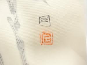 作家物 塩瀬 手描き 南天模様 開き名古屋帯(額縁仕立て)