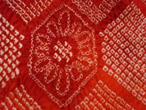 本総絞り亀甲に花模様ショール