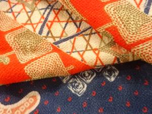 アンティーク 縮緬楓に菊の葉模様着物