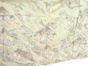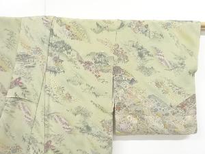 リサイクル 色紙に寺塔風景・草花模様訪問着
