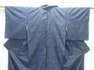 アンティーク 斜め格子模様織り出し本場泥大島紬着物