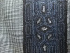 洗練された落ち着きのある色合いで、生地そのものは柔らかく、しわになりにくいと言われている。大島紬の特徴とも言える、織締めと呼ばれる技法で藍を用いて染められた糸を使用している。