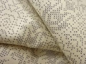 洗練された落ち着きのある色合いで、生地そのものは柔らかく、しわになりにくいと言われている。大島紬の特徴とも言える、織締めと呼ばれる技法で藍を用いて染められた糸を使用している。