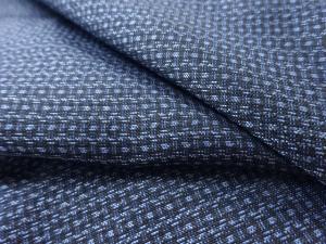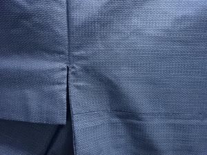 洗練された落ち着きのある色合いで、生地そのものは柔らかく、しわになりにくいと言われている。大島紬の特徴とも言える、織締めと呼ばれる技法で藍を用いて染められた糸を使用している。
