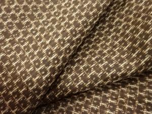 洗練された落ち着きのある色合いで、生地そのものは柔らかく、しわになりにくいと言われている。大島紬の特徴とも言える、織締めと呼ばれる技法で藍を用いて染められた糸を使用している。