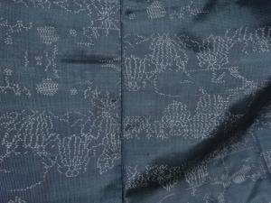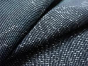 洗練された落ち着きのある色合いで、生地そのものは柔らかく、しわになりにくいと言われている。大島紬の特徴とも言える、織締めと呼ばれる技法で藍を用いて染められた糸を使用している。
